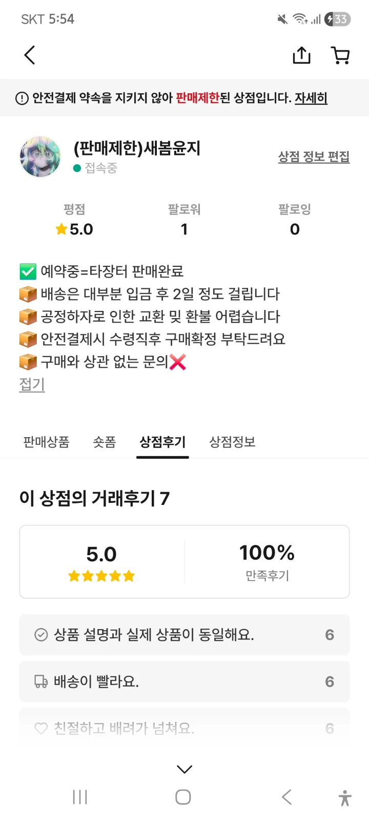 번장 새봄윤지와 같은 사람입니다~ 안전결제 수수료 때문에 넘어왔어요