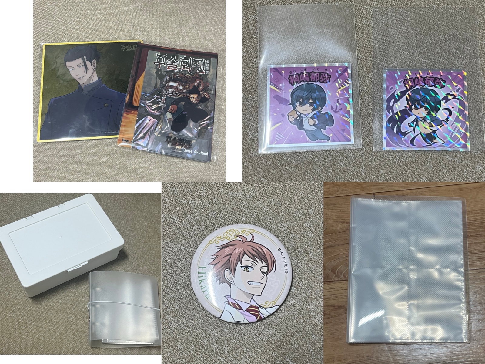 📍모두 개봉품입니다. 예민하신 분은 오지말아주세요. 📍배송비만 받고 보냅니다. 반&끼택 0.2 / 일택 0.4 📍입금 순으로 거래 1. 주술회전 극장판, 만화책 특전 2. Free! 이쿠야 스티커 3. 다이소 통, 바인더 사용감 있음 4. 오란고교 사교클럽 히카루 캔뱃지 5. 일체형 4포켓 바인더(표지용1포켓+4포켓 단면 속지 60장) 속지는 옆으로 넣는 방식입니다(위에서 아래X) 사용감 있음