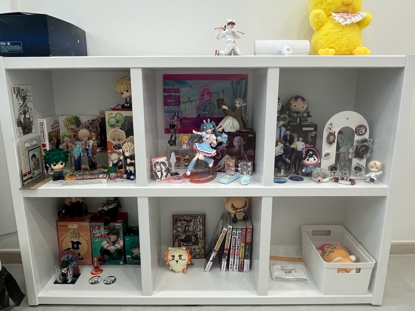 진열장 현 상태인데 현재 본진이 힐앜이라 힐앜존, 미소녀존, 그외 탈덕까진 아닌 휴덕존으로 했는데 생각보다 힐앜 굿즈가 많아서 배치가 고민임.. 되도록 피규어는 바닥 쪽엔 두기 싫은데… 난 왜 3단이 아니라 2단 진열장을 골랐을까…. 굿즈존 꾸미기 좋은 상품이나 아이디어 있을까??