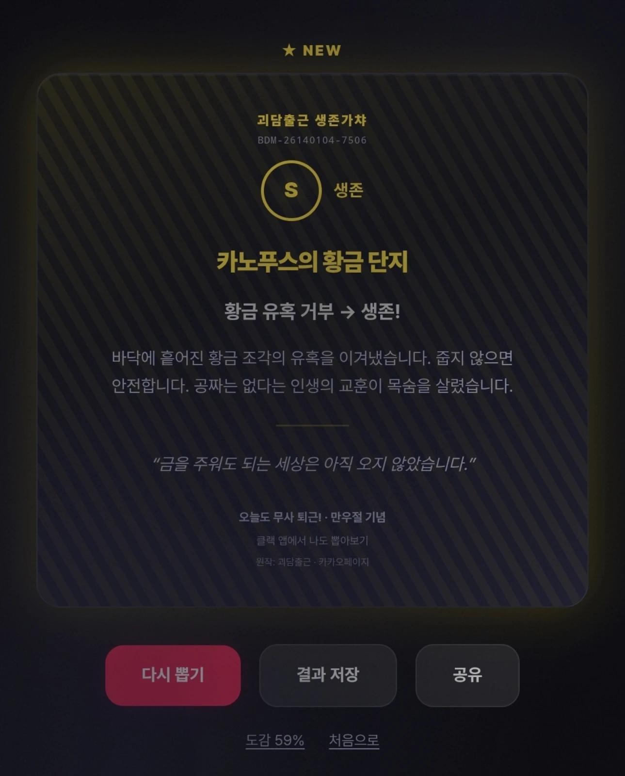 생존 뽑고 싶어서 마구 돌렸더니 떴다!
