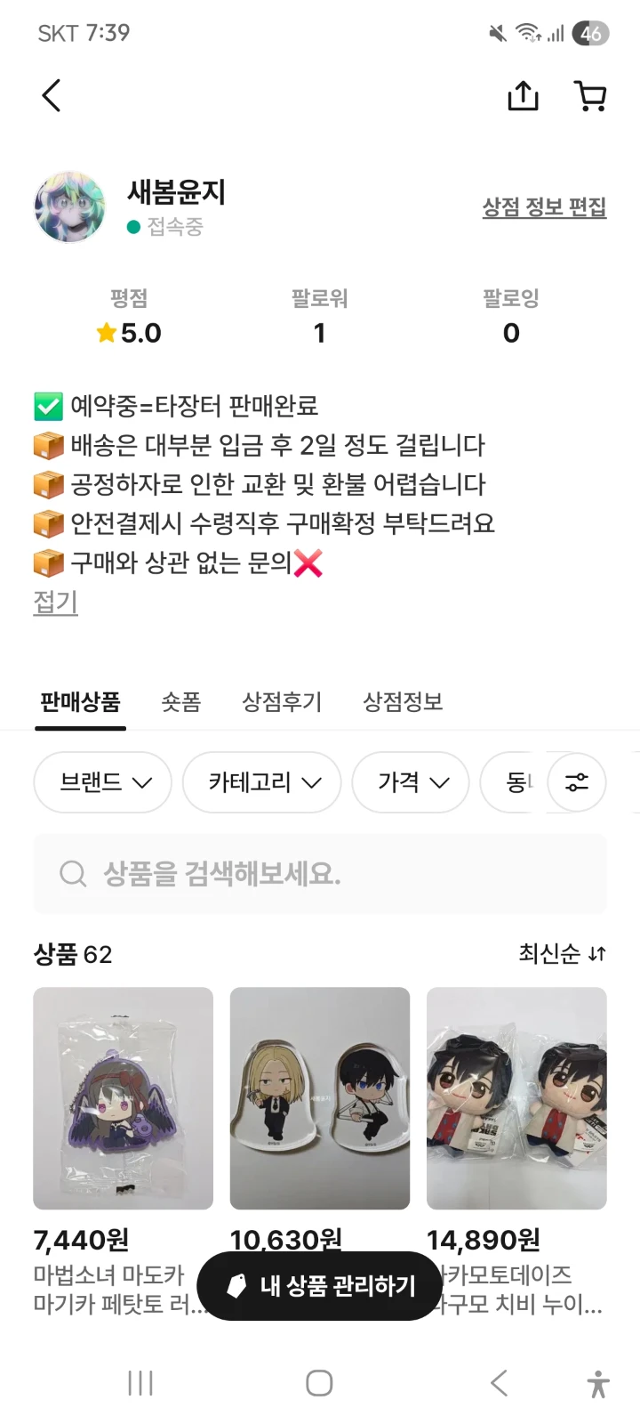 번개장터 새봄윤지와 같은 상점입니다 안전결제 수수료 때문에 넘어왔어요~!